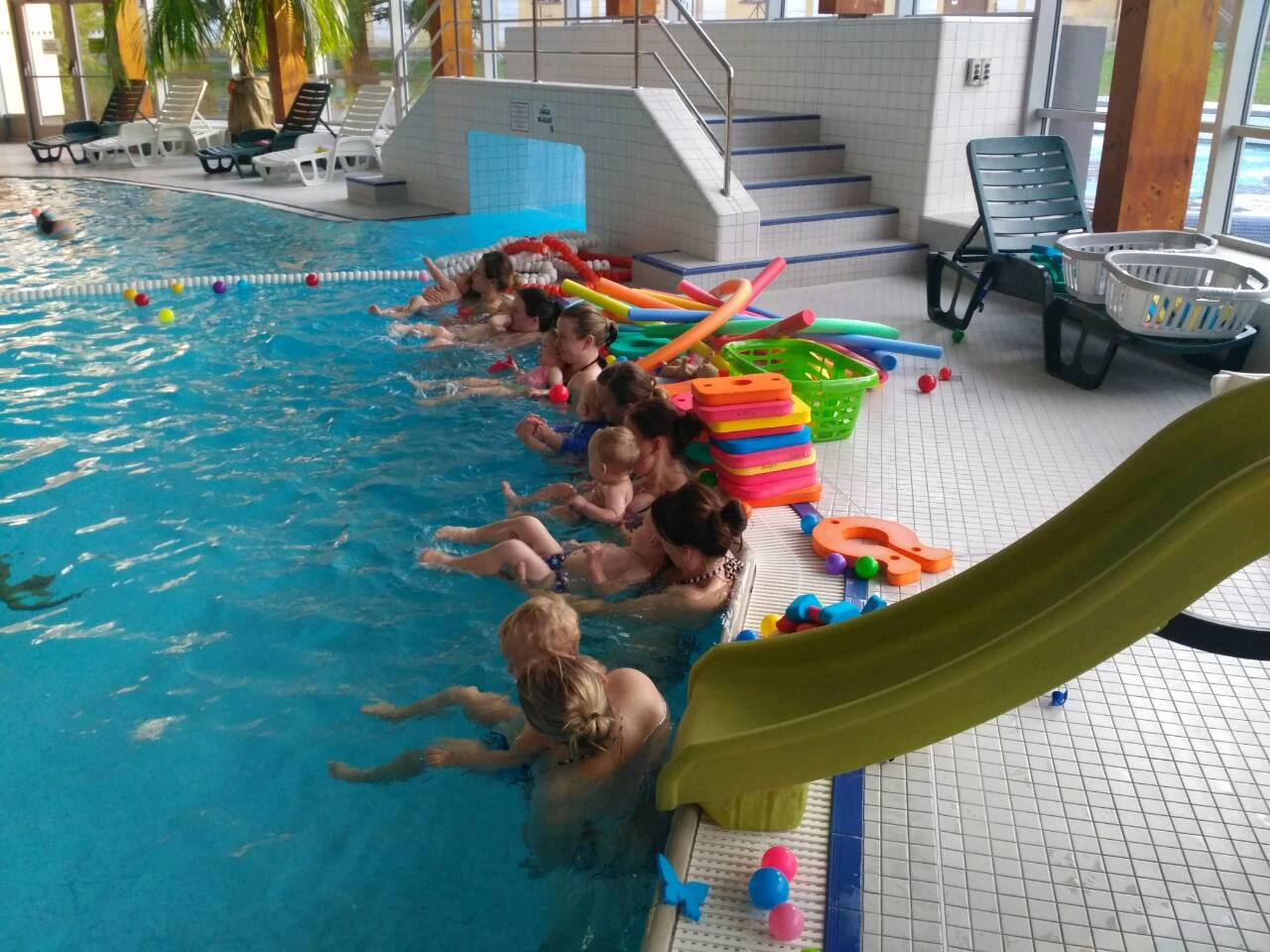 Z dané doby je půl hodiny lekce výuky plavání pro děti. Ve zbývajícím čase je možné využít dětský bazének, vířivku, tobogán, divokou řeku, plavecký bazén nebo parní saunu.